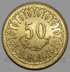 страна: Тунис номинал: 50 миллимов год выпуска: 2007 материал: латунь