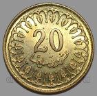 страна: Тунис номинал: 20 миллимов год выпуска: 1993 материал: латунь