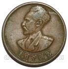 страна: Эфиопия номинал: 1 цент год выпуска: 1944 материал: медь