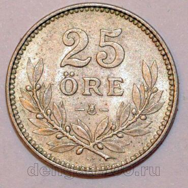 Монета 25 эре 1914 года Густав V 1907-1950гг Королевство Швеция.