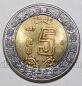 Лот #350-651. MEXICO KM# 605. Би-металл: алюминиевая бронза, нержавеющая сталь, вес 7.07 гр., диаметр 25.5 мм., толщина 1.9 мм., гурт - гладкий.