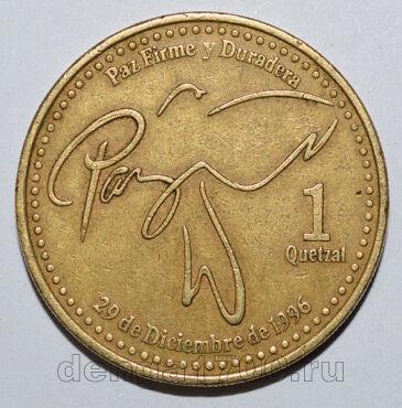 Легенда: аверс - REPUBLICA DE GUATEMALA, реверс - 1 Quetzal / 29 de Diciembre de 1996 / Paz Firme y Duradera.