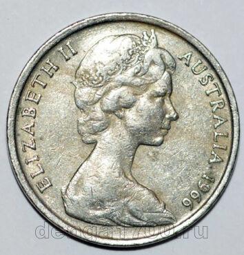 Лот #355-911. AUSTRALIA KM# 65. Медно-никелевый сплав, вес 5.65 гр., диаметр 23.6 мм., толщина 2 мм., гурт - рубчатый.