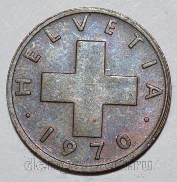 Монета 1 раппен 1970 года Швейцарская конфедерация.
