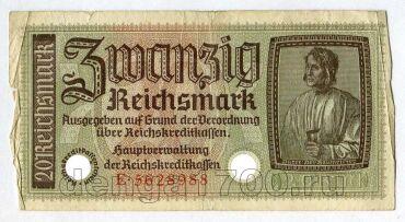 Германия 20 марок 1940-1945гг оккупация E5628988, #l476-021