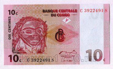 Конго 10 центов 1997 года C3922491S UNC, #l492-040