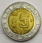 Лот #460-475. MEXICO KM# 605. Би-металл: алюминиевая бронза, нержавеющая сталь, вес 7.07 гр., диаметр 25.5 мм., толщина 1.9 мм., гурт - гладкий.