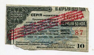 Купон 4 рубля 50 копеек 1917 года Сибирский ревком 4й разряд, #l545-268