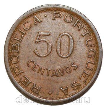 Монета 50 сентаво 1973 года Мозамбик, колония Португалии.