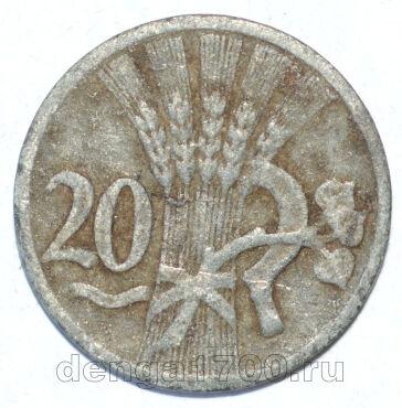 Монета 20 геллеров 1941 года Богемия и Моравия.
