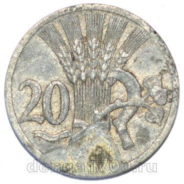 Монета 20 геллеров 1941 года Богемия и Моравия.