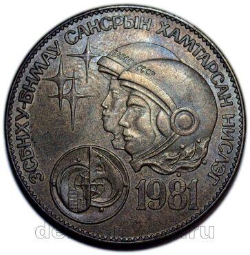 Монголия 1 тугрик 1981 года Советско-монгольский космический полёт, #680-948