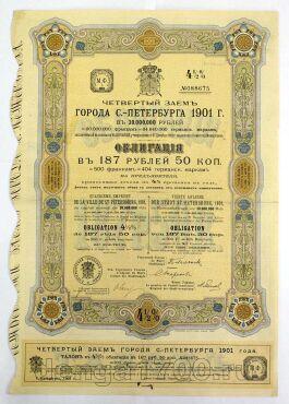 Заем г.С-Петербурга Облигация в 187,5 рублей 1901 года №088675, #l910-012