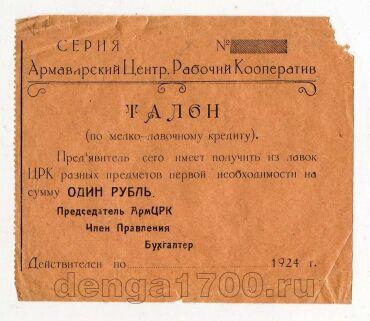 Армавирский Центральный рабочий кооператив 1 рубль 1924 года, #l898-016