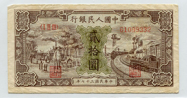 Народный банк Китая 20 юаней 1948 года Pick 804.